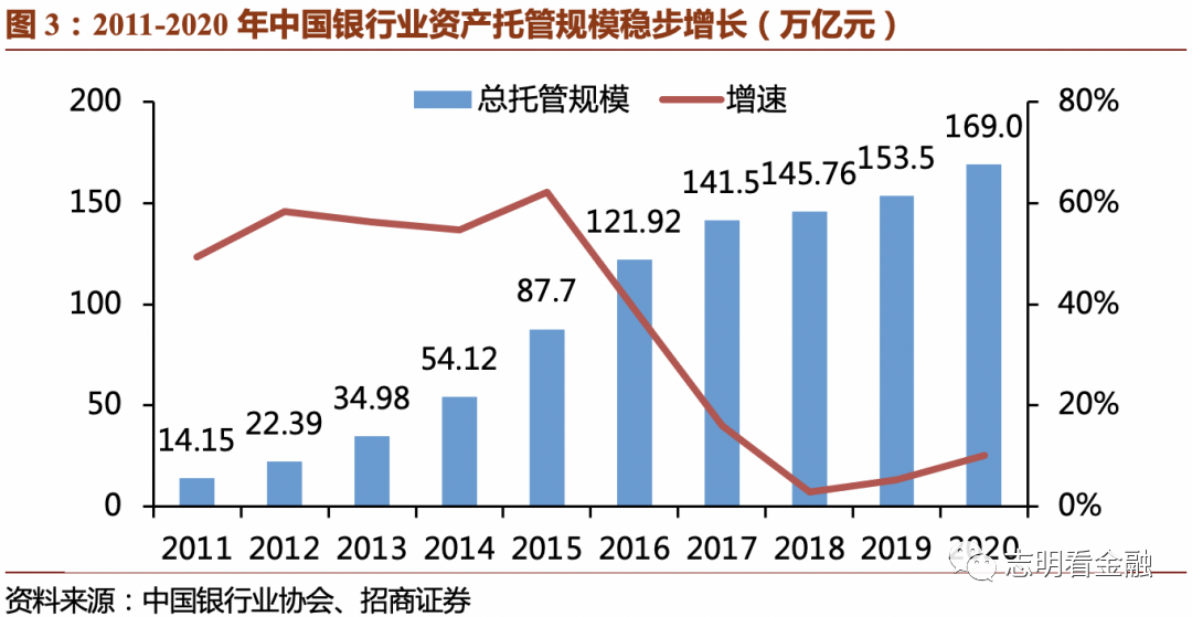1.2银行资产托管规模近170万亿,未来有望稳健增长