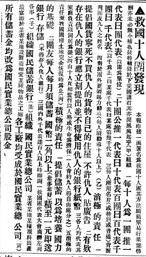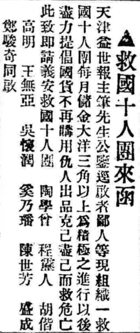 民众向《益世报》报社致信,宣布自发成立“救国十人团”