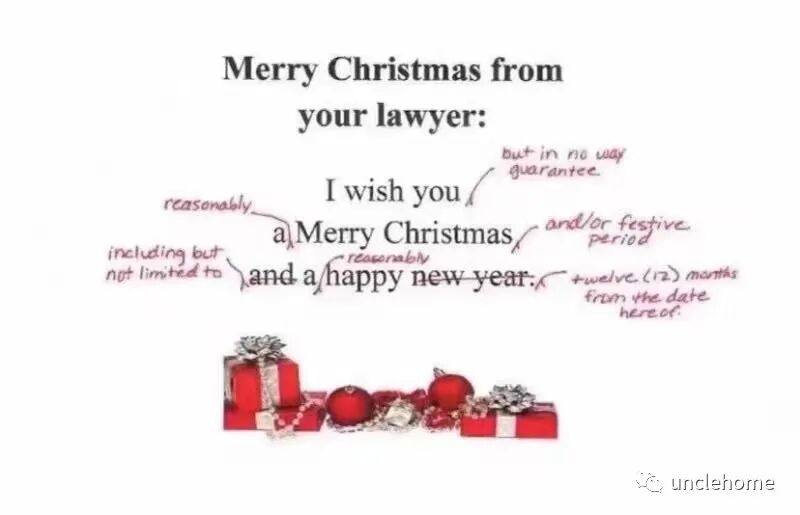 每到圣诞节,这张图就会流传在朋友圈儿,用来取笑律师喜欢把简单的事情搞得很复杂。