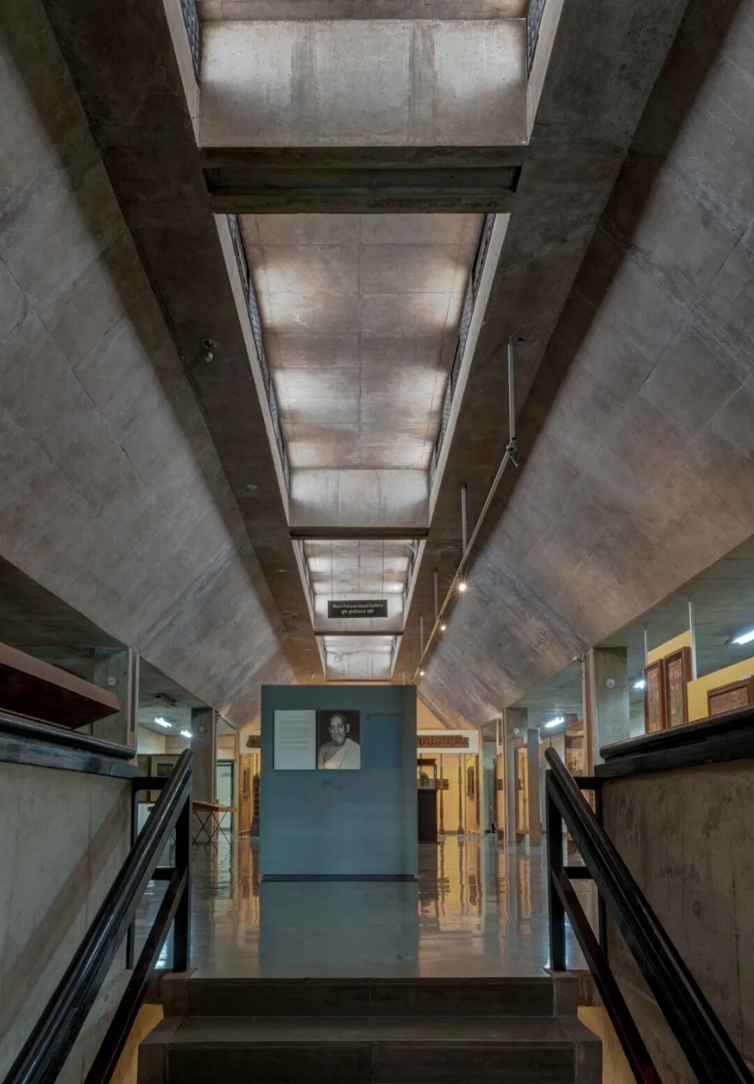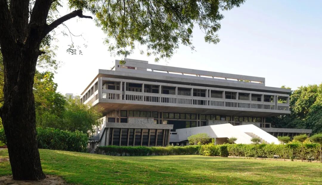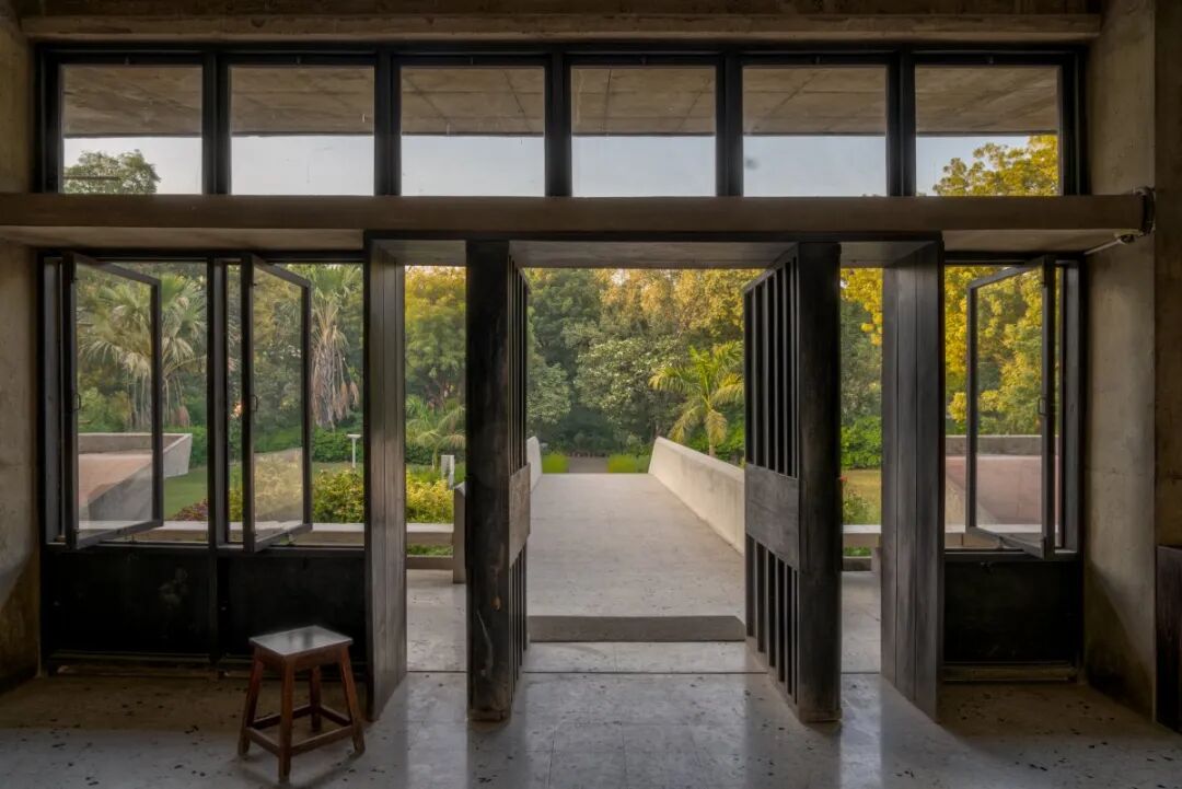 中央庭院向天空开放,自然光线穿透建筑的核心,这被视为启蒙的象征。同时,基于艾哈迈达巴德炎热、干旱的气候特征,建筑融入了多种环境策略,屋顶设置深檐和挑檐,以缓解强烈阳光的直晒,建筑内部光影的相互作用,创造出舒适的室内空间。
