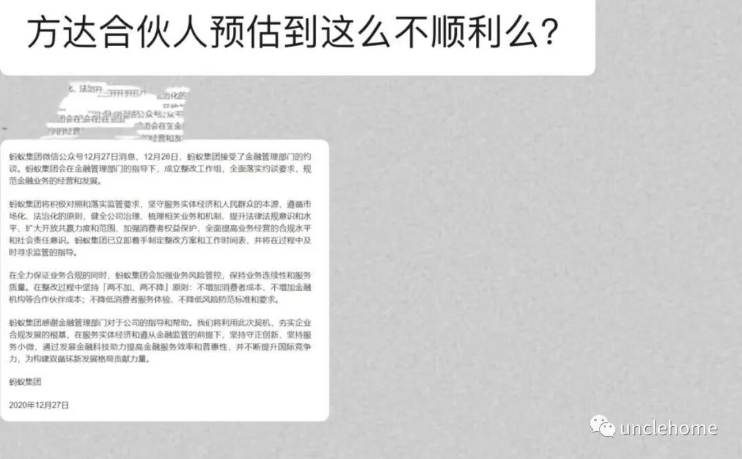 方达的创始合伙人选择去蚂蚁的时候,校长还写了篇下面的文章,认为他留在律所,尤其是留在律师发起一波干互联网公司的运动,比去一家互联网金融企业更有意义。最近蚂蚁的遭遇,我们学院还有人讨论说👇,这位合伙人当时的选择现在看是不是对?虽然校长当时认为合伙人没必要去蚂蚁,但是其实只要当时的选择是遵从自己的内心确信,选择啥都行,不能以现在的蚂蚁的情况去度人家当时的选择。