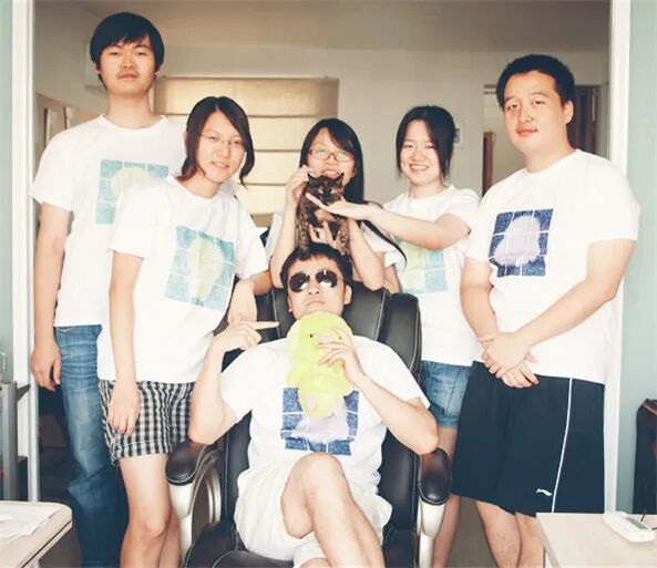 2014年,天雷动漫拿到第一笔天使轮投资后的核心团队成员(右一雷涛)
