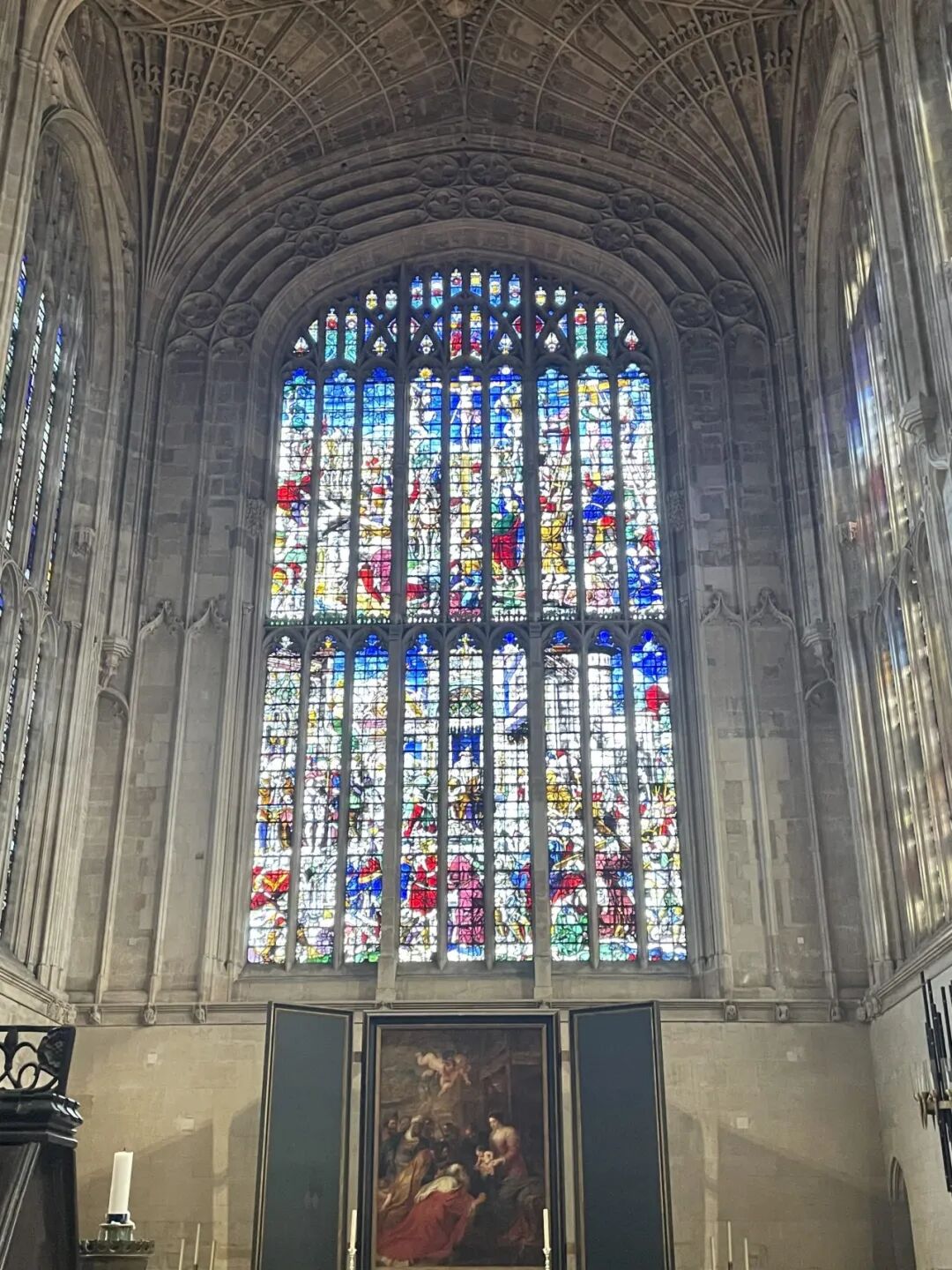 国王学院教堂也是剑桥的标志建筑。整个教堂都采用彩色玻璃作为窗户。教堂耗时一个世纪,直至亨利八世才彻底完工。
