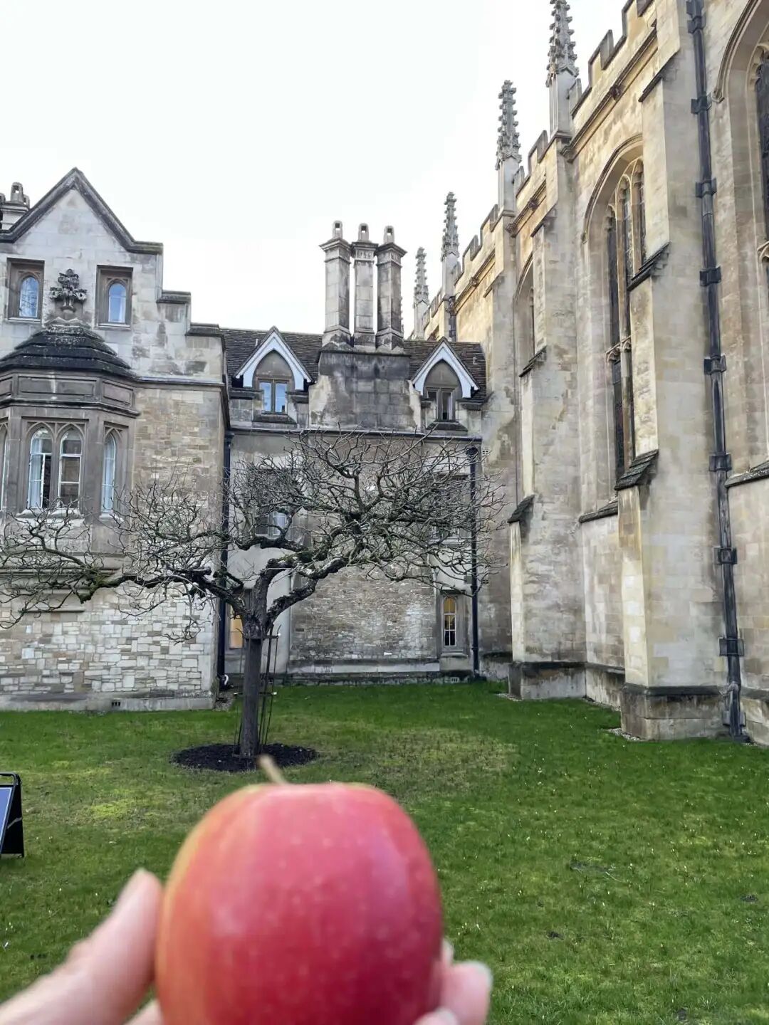 三一教堂和门前的牛顿苹果树