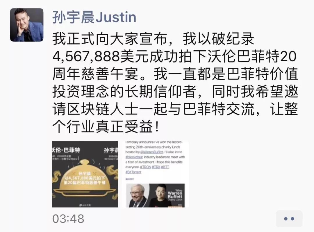 为了和巴菲特吃顿饭,广东籍90后孙宇晨花了3100w。