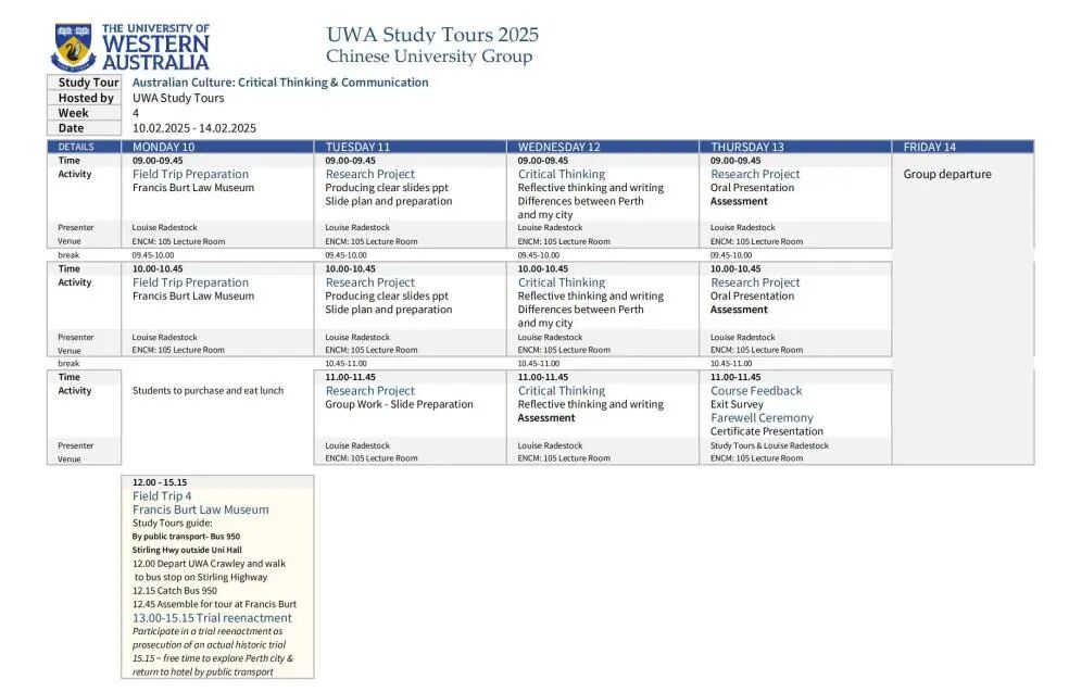 每周安排1-2次户外探索,带同学们走进珀斯的文化与自然风光。从历史名城弗里曼特尔的迷人港口,到充满魅力的铸币厂,再到法律博物馆等地标性场所,通过亲身体验,将课堂知识与现实连接,感受澳大利亚的多元文化与壮美自然。这些独特的活动不仅丰富学习体验,更让同学们在探索中真正理解澳洲文化,收获难忘的成长与发现。