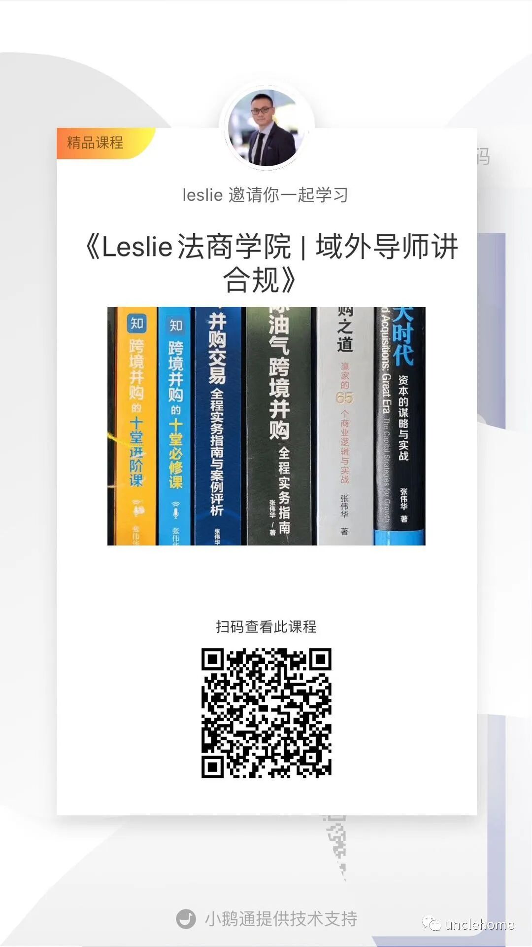 跨境并购实务专家、国际油气实务、纠纷争议解决专家uncle莱斯利的个人公众号。主要讲海外投融资、并购交易实务、跨境纠纷诉讼那些事儿,不定时的闲聊和八卦,主旨:有益、有趣、有用。欢迎关注、交流。关注 www.leslie-school.com