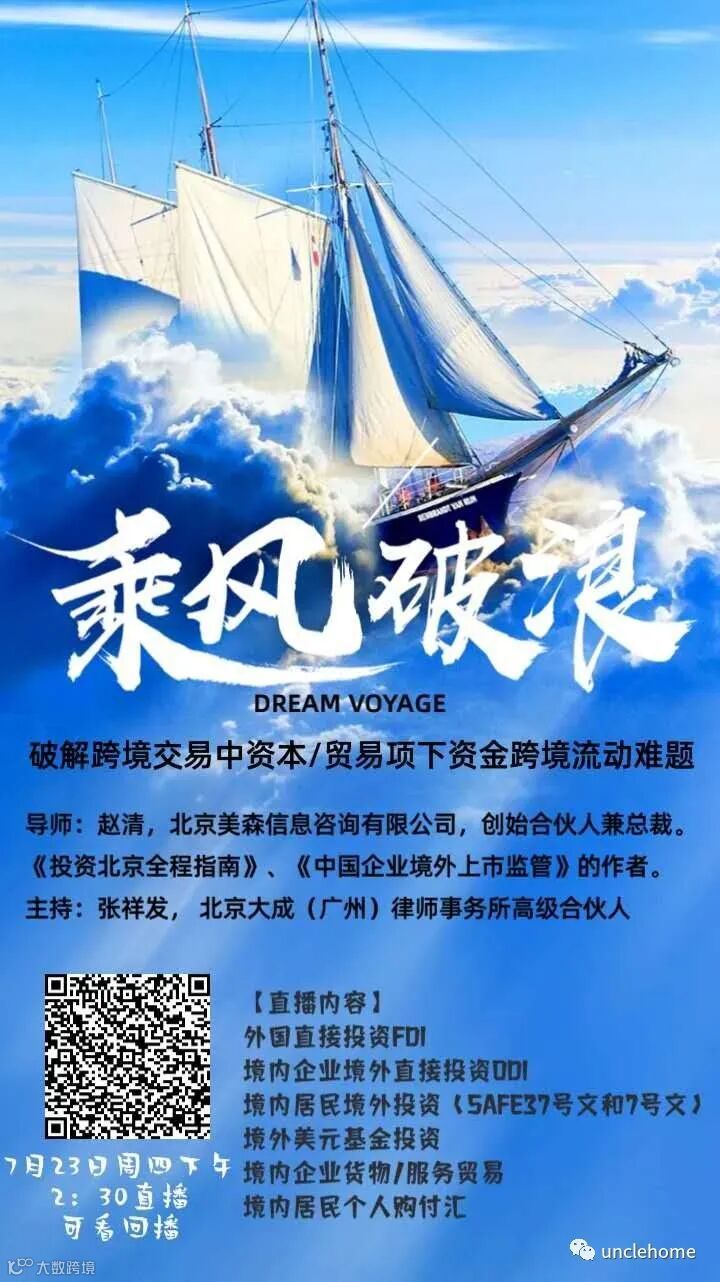 今日,法商学院导师赵清直播讲解:全景式跨境投融资/贸易中外汇资金的合规风险管理,内容包括:外国直接投资FDI、境内企业境外直接投资ODI、境内居民境外投资(SAFE37号文和7号文)、境外美元基金投资、境内企业货物/服务贸易、境内居民个人购付汇