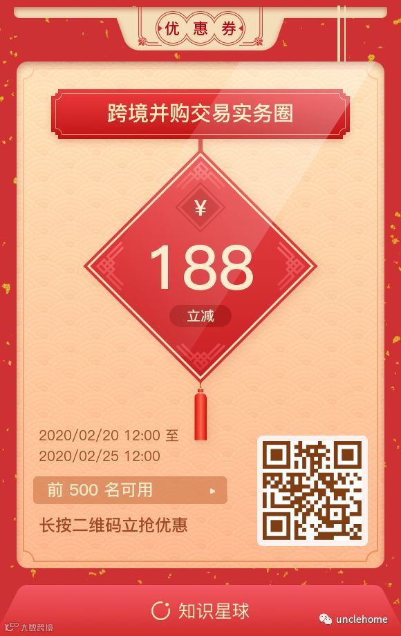 另外,对于跨境并购实务圈的朋友,哥送个优惠券儿!