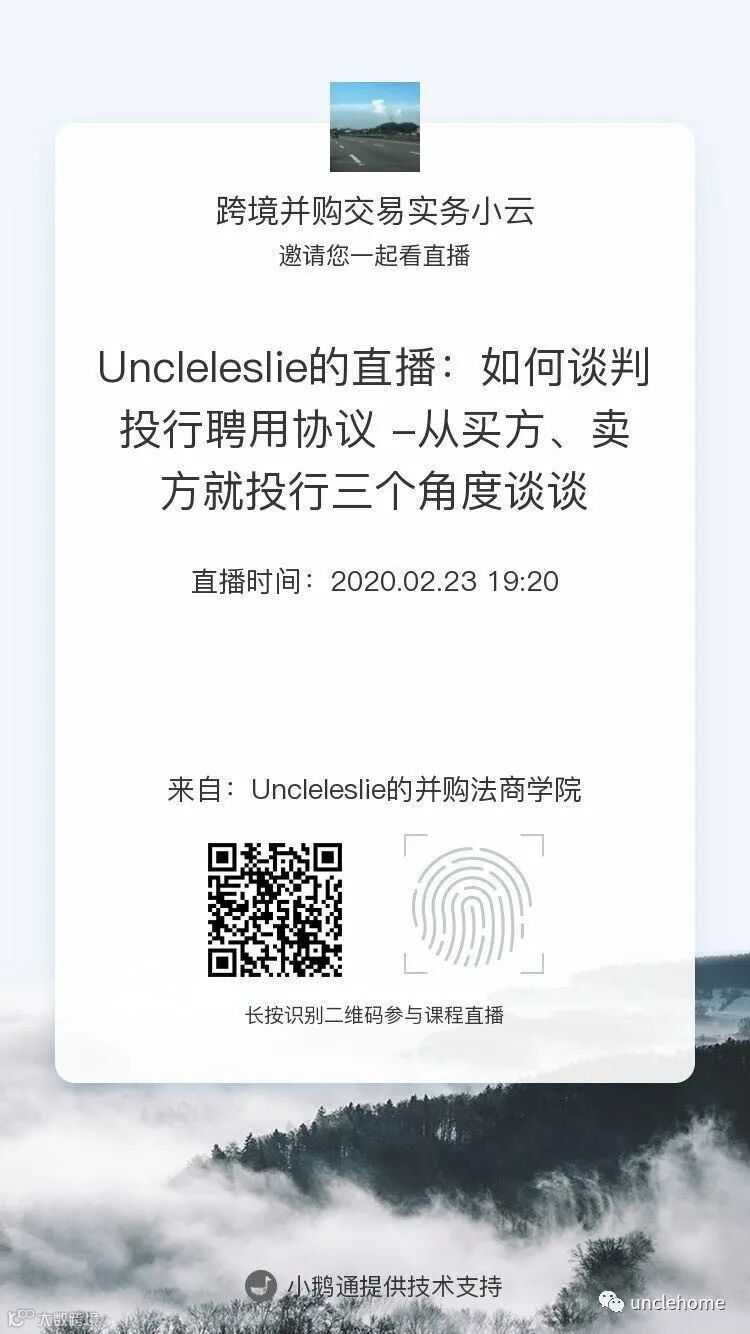 周末在Leslie法商学院搞个直播,从买方、卖方和投行360度谈谈交易中投行聘用协议的谈判和要点。