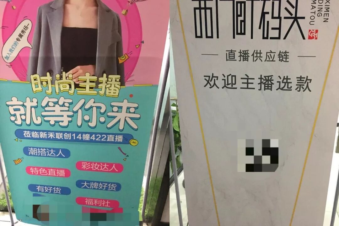 新禾联创产业园里每家供应链基地门外,几乎都放着寻找主播的易拉宝。