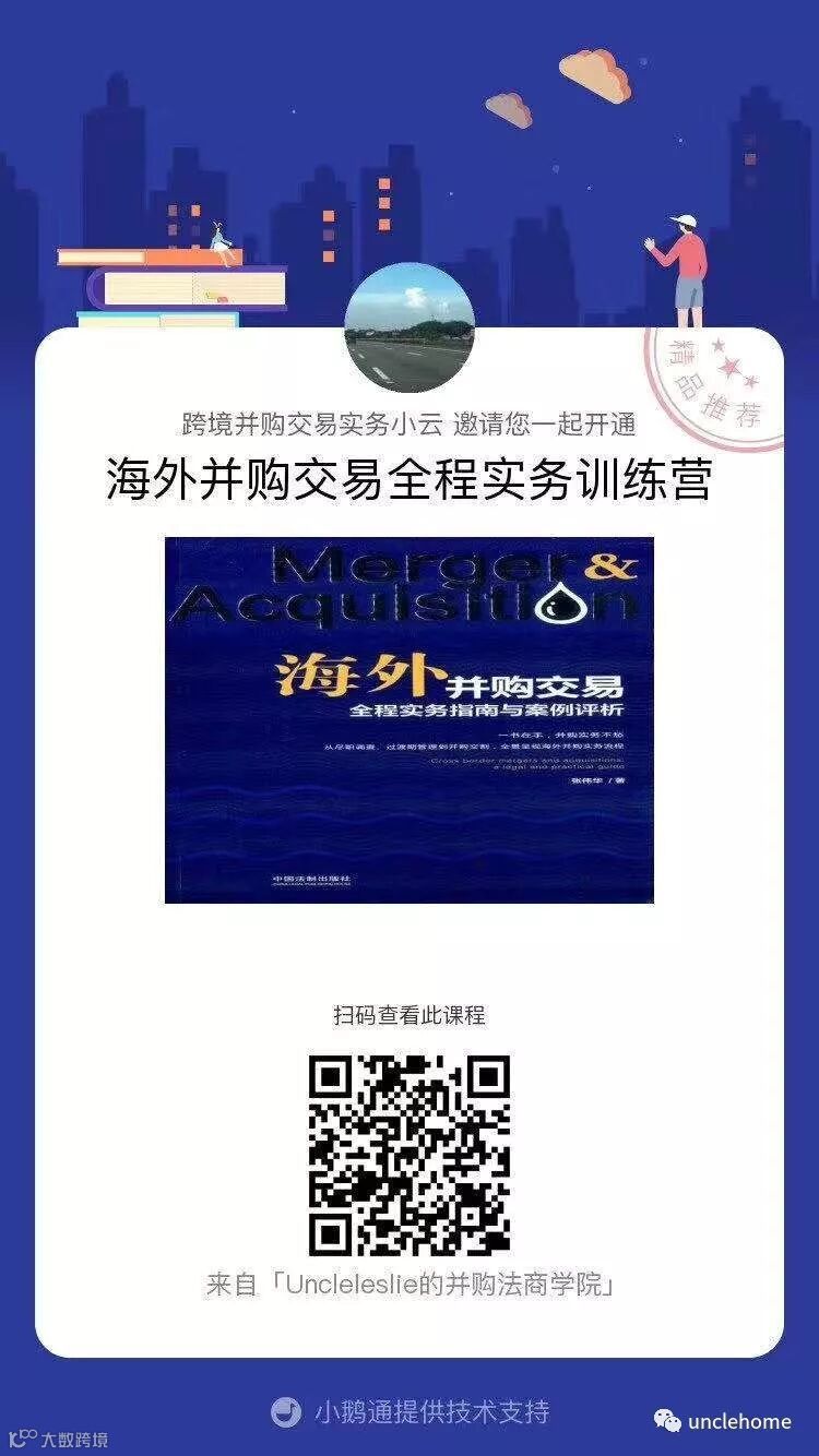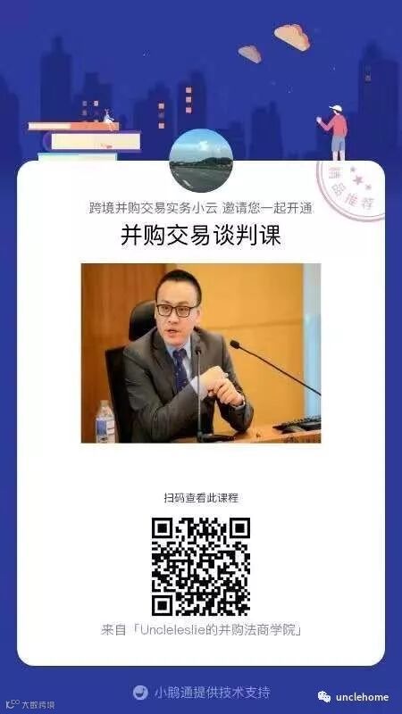 如果你听小视频里面的英文没啥问题,又做国际业务的话,那么加入Uncleleslie并购法商学院是个好选择!有朋友问我:你是建了一所网上大学嚒?答:是的。