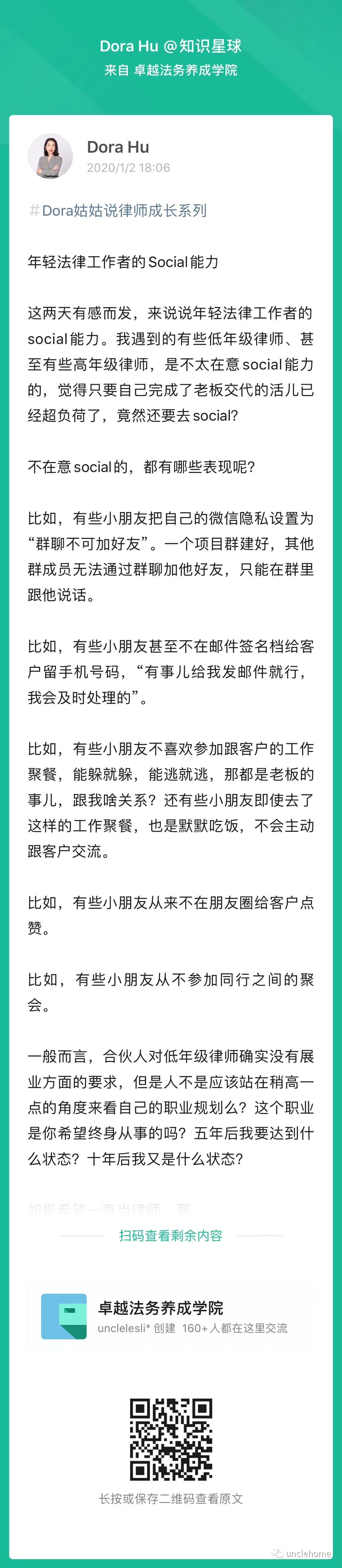 考虑到确实有部分在企业工作的法务朋友有这方面的需求,或者只是单纯想交流法务职务经验、管理经验等,同时考虑到目前跨境并购实务圈的价格对于企业法务还是有一定的门槛(目前1000+/年,根据规则每超100人后还会有所提高),Uncle建了一个【卓越法务养成学院】,欢迎企业法务的朋友们加入,一起交流解答关于法务人士在职业、管理、企业合规管理等范畴内的问题。