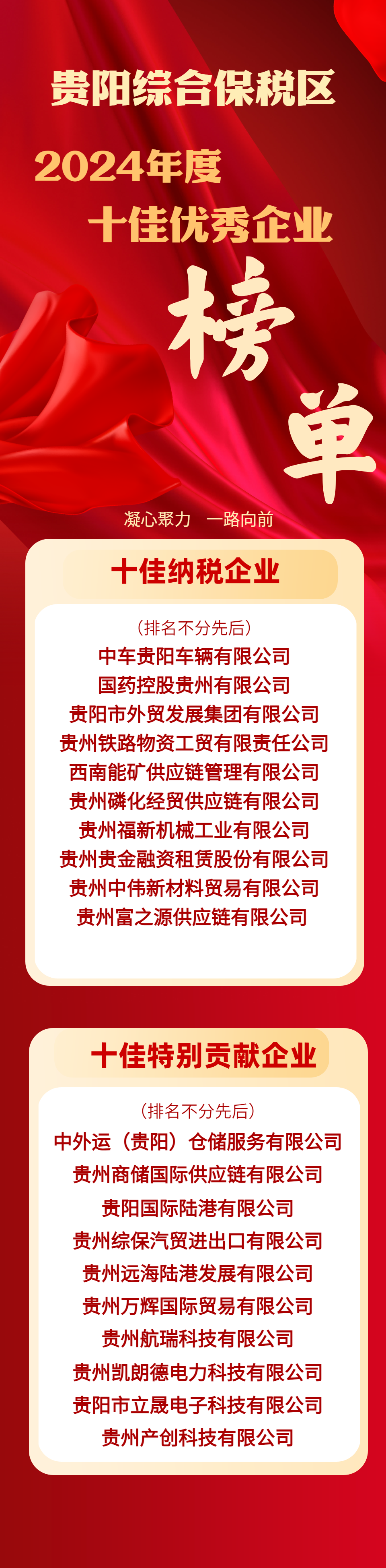 贵阳综合保税区2024年度“十佳优秀企业”榜单