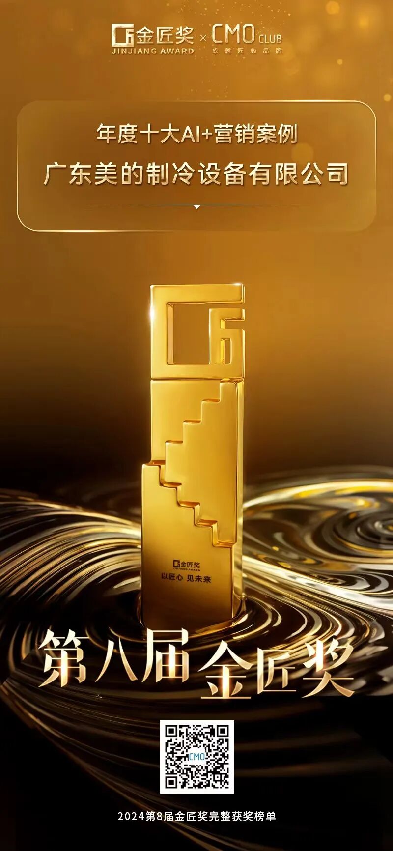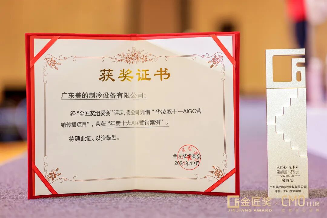 金匠奖在营销领域具有极高的权威性和广泛认可度,其评选标准严格且全面,涵盖创新思维、策略执行、营销效果等多个关键维度。对于追求卓越、坚守匠心的品牌而言,该奖项是对其努力和创新的高度肯定。华凌凭借双十一期间的AIGC营销传播项目,在众多参评者中脱颖而出,荣获金匠奖“年度十大AI+营销案例”奖。其参赛主题 “神机超AI:华凌共创未来家电”,充分展现了华凌在AI+营销领域的卓越实力和勇于探索的精神。