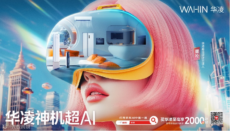 在“说年轻人的话”之后,华凌持续发力“做年轻人的事”。通过深度挖掘AIGC的叙事潜力,推动品牌年轻化,华凌积极与头部艺术家合作,打造一系列艺术性与科技感兼具的概念大片,这些大片以赛博风格畅想未来家电和家居场景。