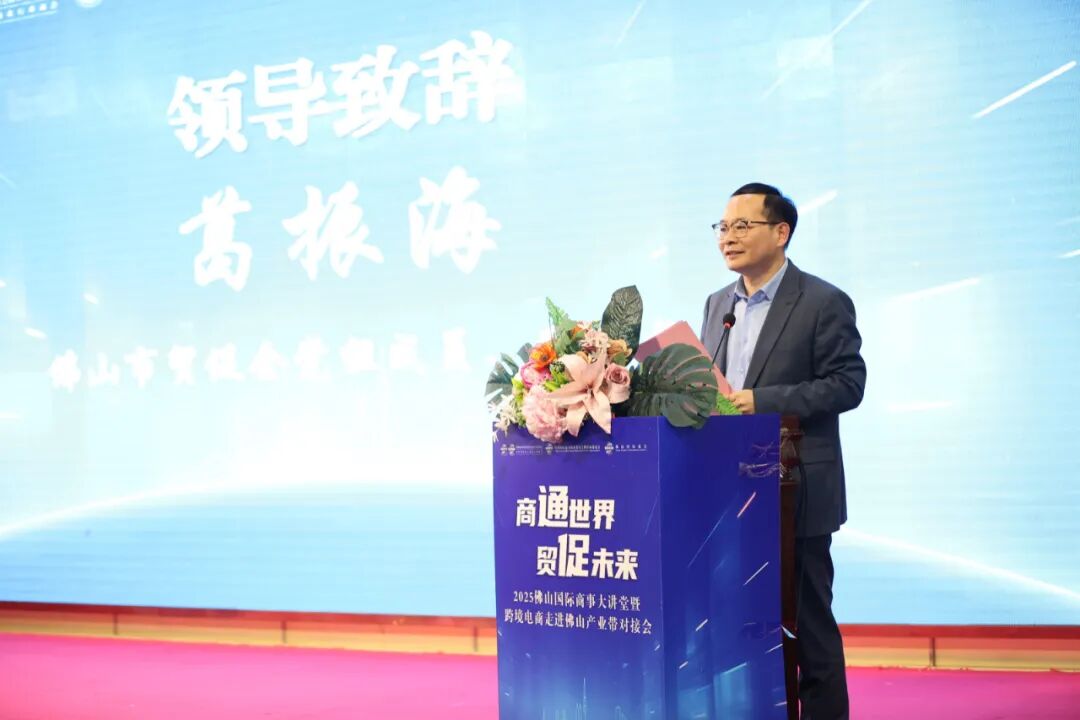 活动当天,现场气氛热烈非凡,来自佛山市的300余名企业及相关单位代表齐聚一堂,共商发展大计。开场前,佛山市贸促会宣传片在现场循环播放,生动展示了贸促会为企业服务的坚定决心与卓越成果,让参会者对贸促会的工作有了更深入的了解。随后,佛山市贸促会党组成员、副会长葛振海为活动致辞。他表示,佛山市贸促会将充分发挥贸促会联通政企、融通内外、畅通供需的职能作用和平台优势,以“商通世界·贸促未来”系列活动为抓手,助力更多佛山外贸企业理性出海,为“再造一个新佛山”做出更大的贡献。