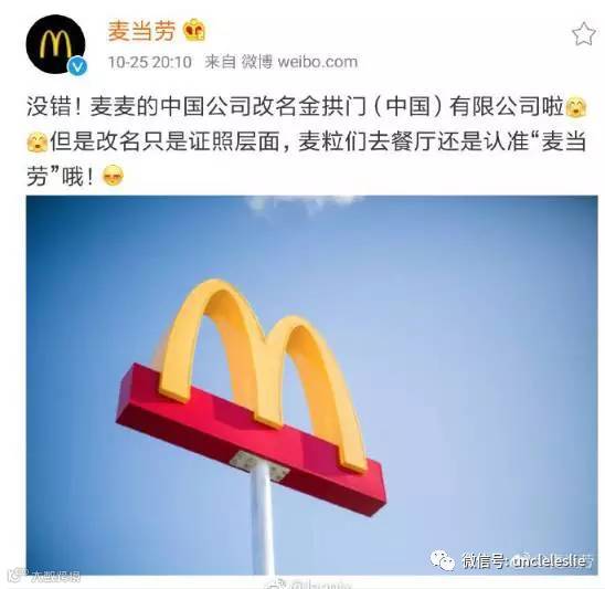 这两天麦当劳中国公司改名叫做金拱门中国公司的消息,引发了段子手、网友的一席狂欢。大家纷纷表达对“金拱门”这个带有一丝丝城乡结合部气息表示了嘲笑。肯德基、汉堡王、百事可乐等等国外知名餐饮品牌等也纷纷躺枪。