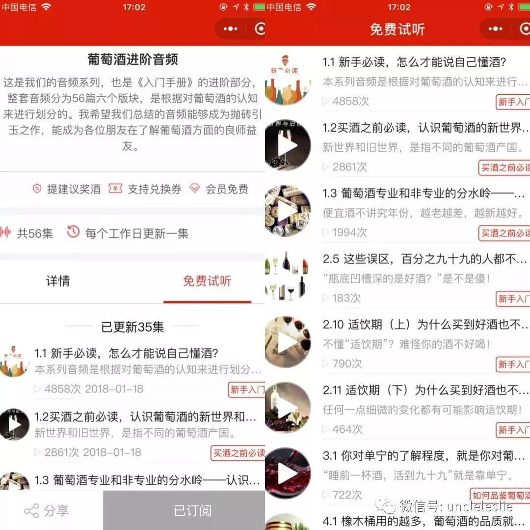 三.录制了56篇红酒知识音频,目前为付费,不过我这边有免费名额,添加他们品酒师微信,即可免费领取!