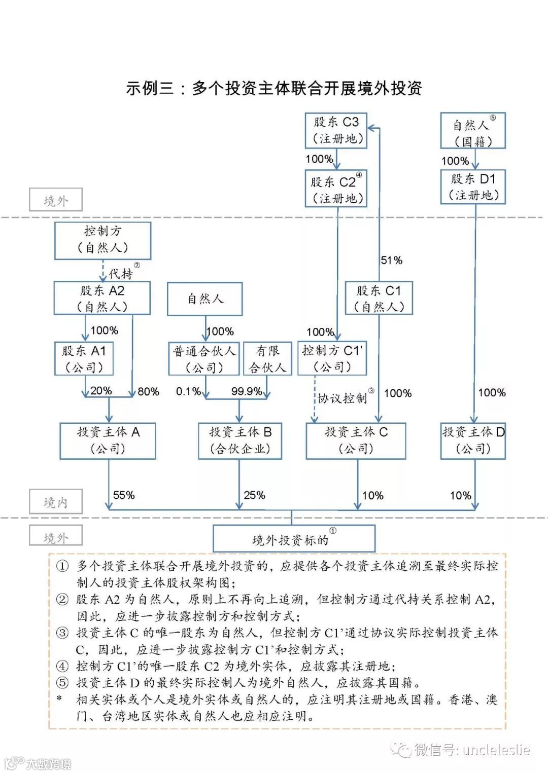 这个必须要上NDRC的图了,党和政府对于海外投资最终实控人也是很好奇啊!尤其需要注意的是:大额非敏感类境外投资项目情况报告表中,对于境内企业控制的海外企业直接投资,境内自然人通过其控制的境外企业或香港、澳门、台湾地区企业对境外开展投资的,均需提交此表。