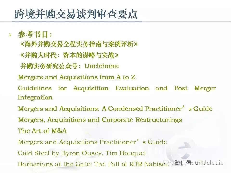 跨境并购实务专家、国际油气实务、纠纷争议解决专家uncle莱斯利的个人公众号。主要讲海外投融资、并购交易实务、跨境纠纷诉讼那些事儿,不定时的闲聊和八卦,主旨:有益、有趣、有用。欢迎关注、交流。关注 www.leslie-school.com