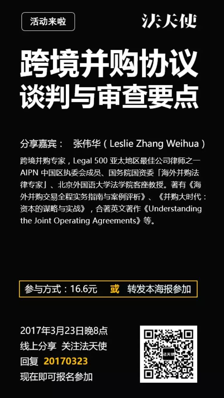 本期活动,法天使邀请到张伟华先生与大家分享跨境并购协议的相关话题。