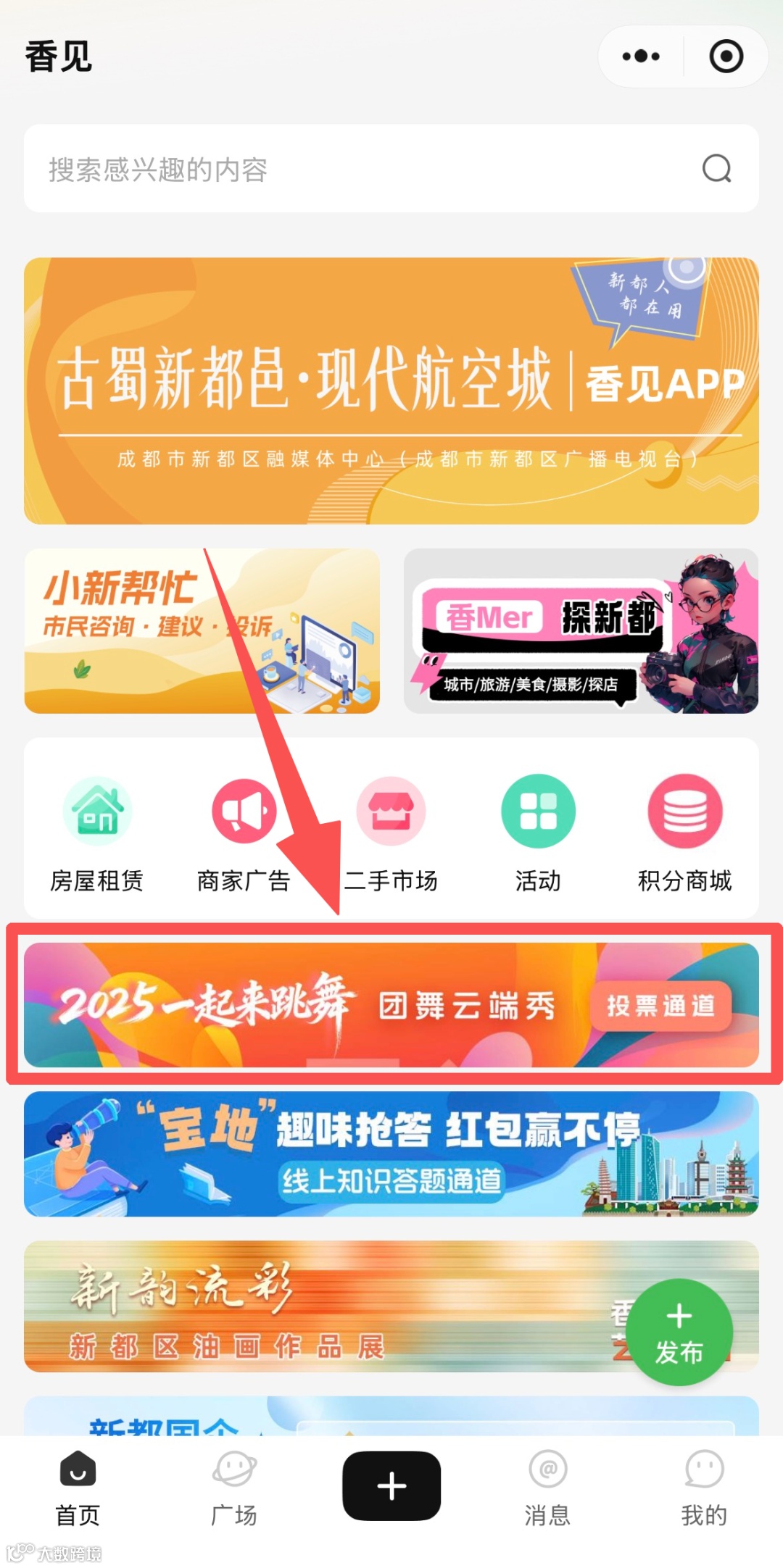 1、通过手机应用商城下载/打开“香见”APP进行投票