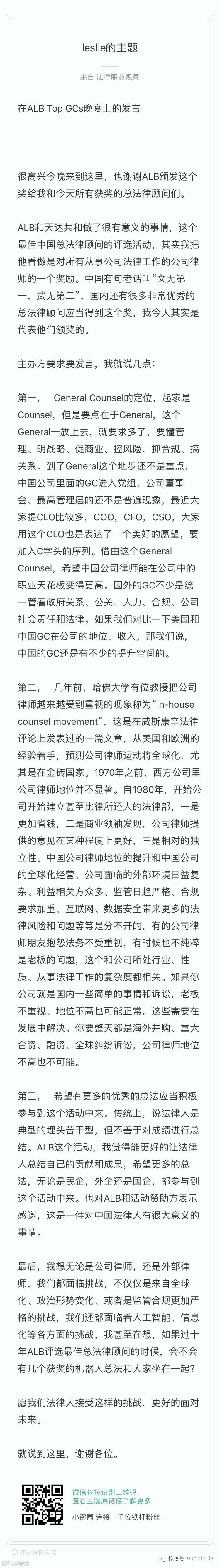在ALB Top GCs晚宴上的发言