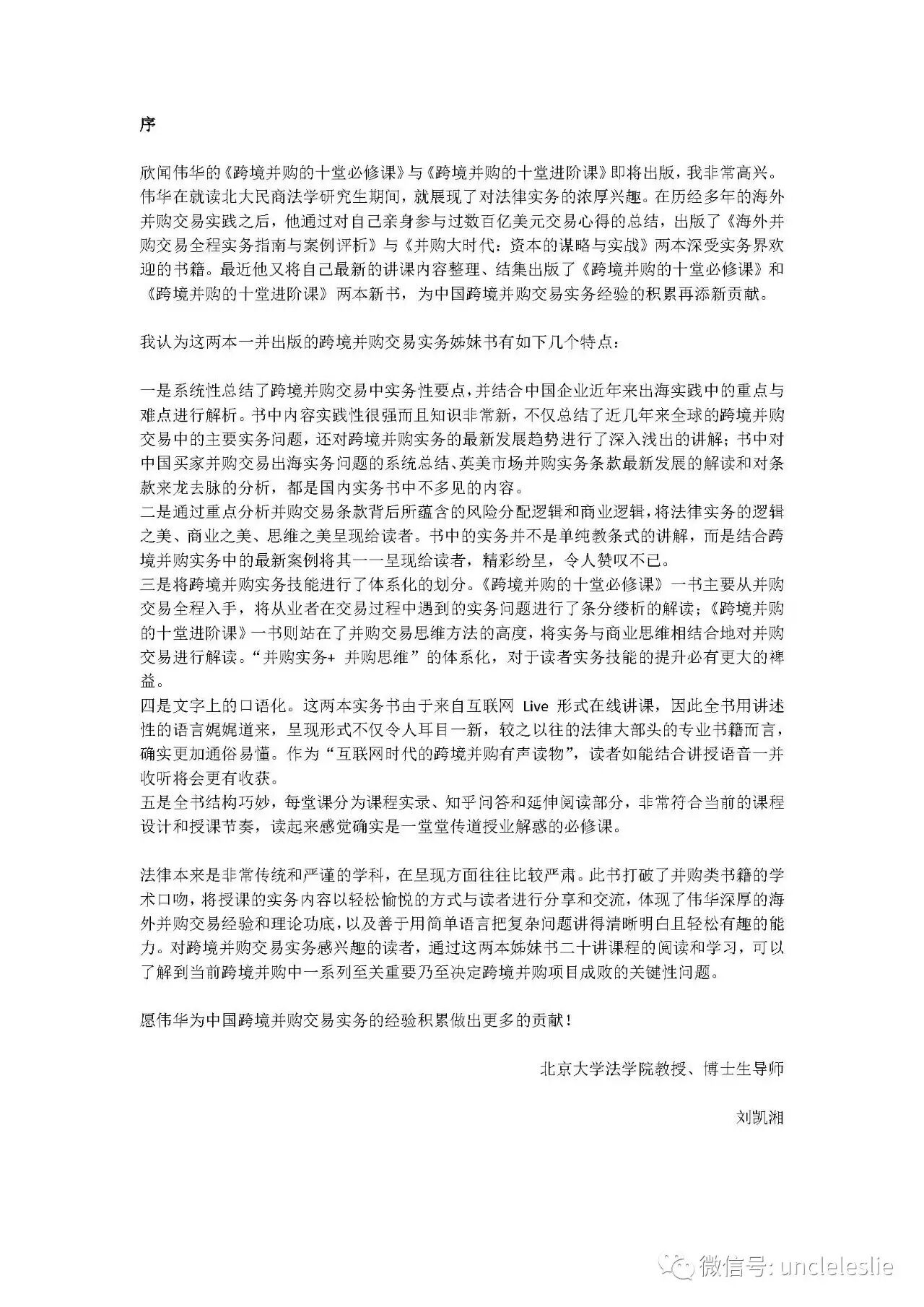北大教授刘凯湘先生为《跨境并购十堂必修课》与《跨境并购十堂进阶课》两本书所做的序: