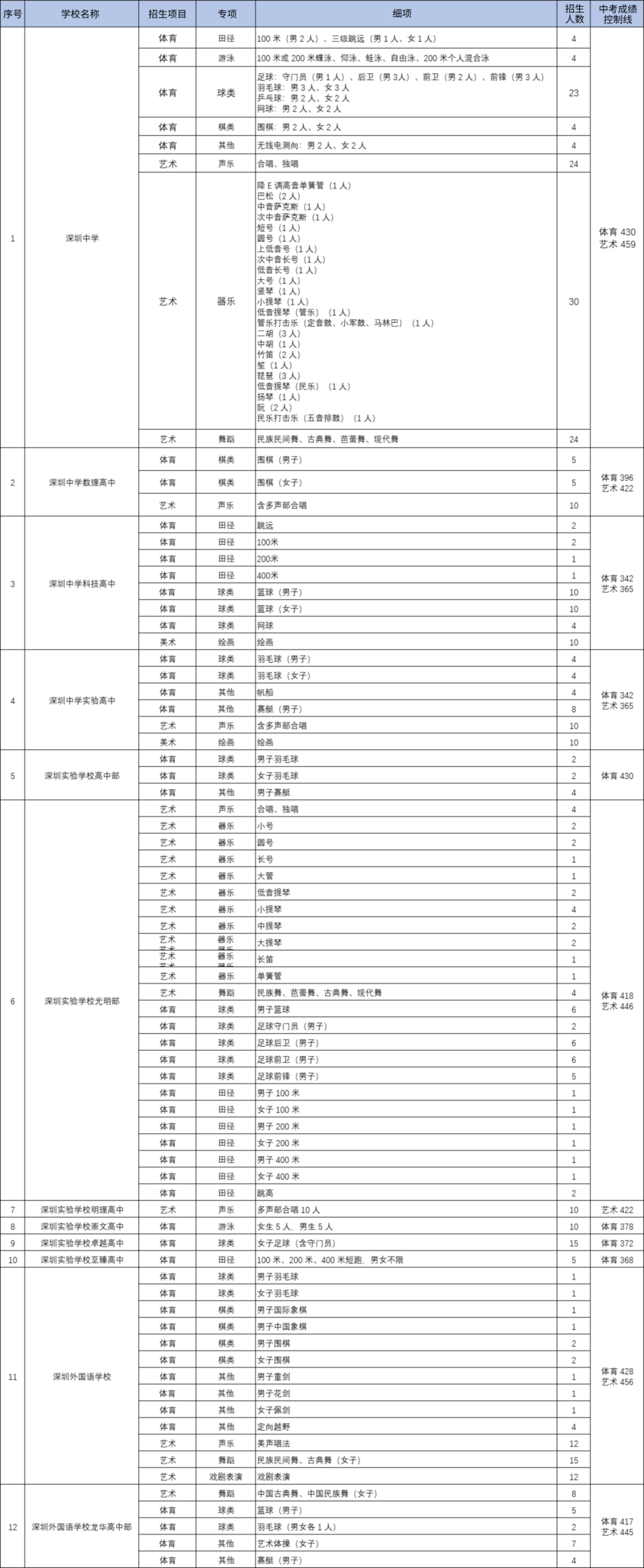 2024年深圳中考,参与一类自主招生的公办高中共73所,招生4306人。去年一类自主招生出现两种招生模式,一种是原招生模式,即各学校不区分理工、人文等学科具体人数的模式,该计划内的高中普遍排名靠前;另一种则是今年推出的新招生模式,即计划内的各学校具体明确了每个学科项目的招生人数。