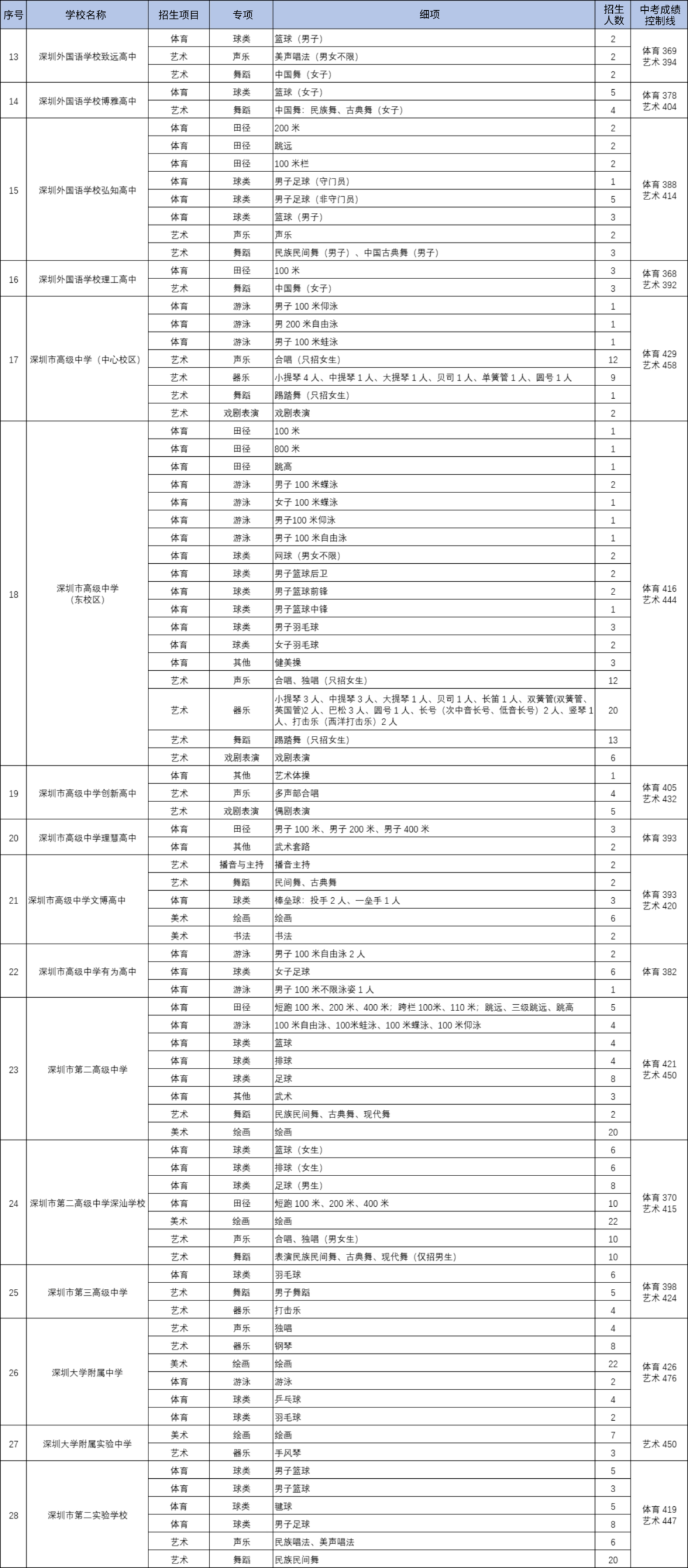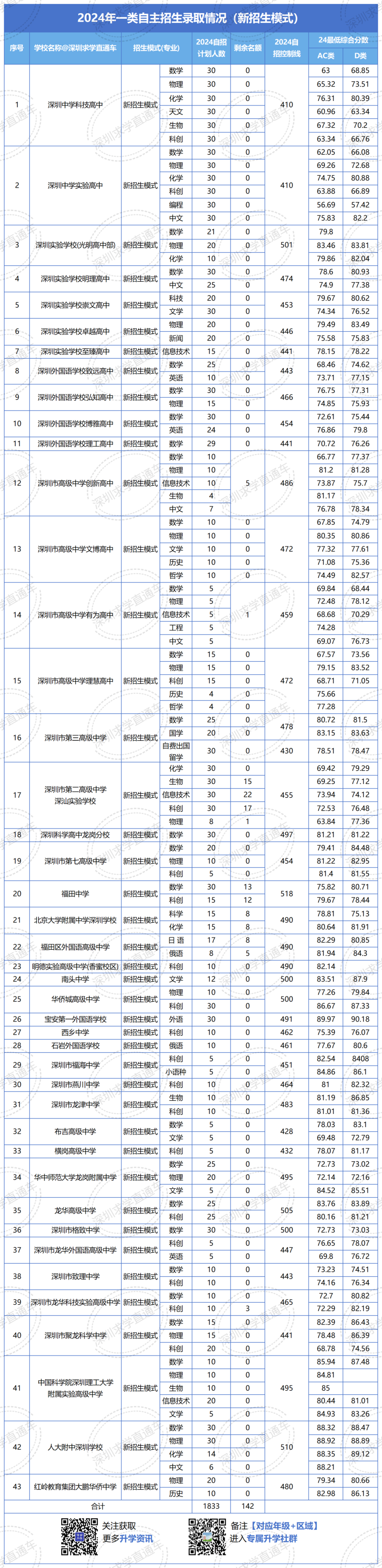 从上表可以看到,深圳2024年开展一类自招新招生模式的43所高中里: