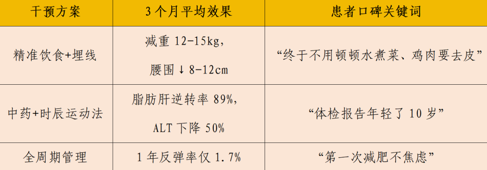 扔掉“吃草饿晕”的极端食谱,告别“累瘫不瘦”的健身房噩梦,中国中医科学院西苑医院山西医院(山西中医药大学附属医院)脾胃病科以“数据+中医”双剑合璧,揭秘肥胖基因密码:10分钟锁定内脏脂肪“犯罪证据”,运用中医体质辨识揪出“易胖元凶”,从健脾化湿、膏脂归化的千年经方到穴位埋线的燃脂黑科技,让减重不再靠毅力,而是靠科学!