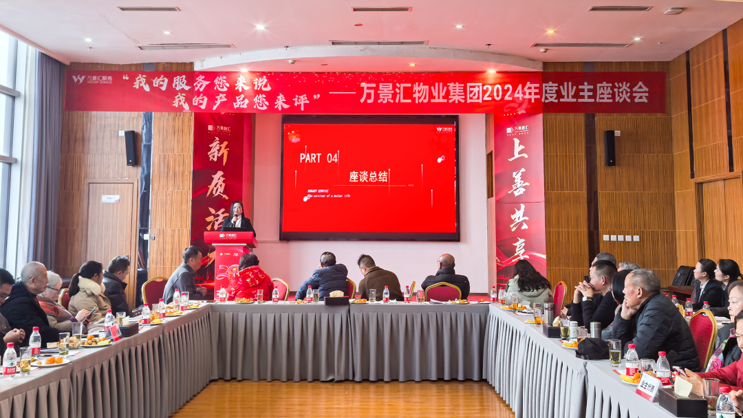 四川区域座谈会上,品质运营中心做年度物业工作总结汇报。汇报围绕物业服务品质提升、安全工作落地、服务标准升级、社区文化活动开展等业主追踪点关注问题展开,阐述一年来的工作成效。万景汇物业高品质服务,在业主眼前具象化。