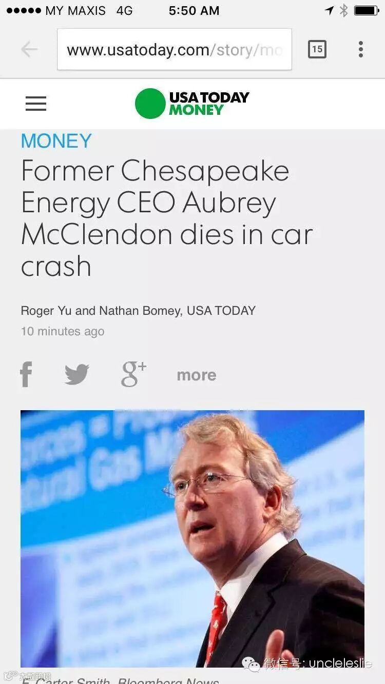 早上起来本来正在写交易评论,听到Aubrey McClendon先生车祸去世的新闻,今天就纪念下Aubrey McClendon同志吧。