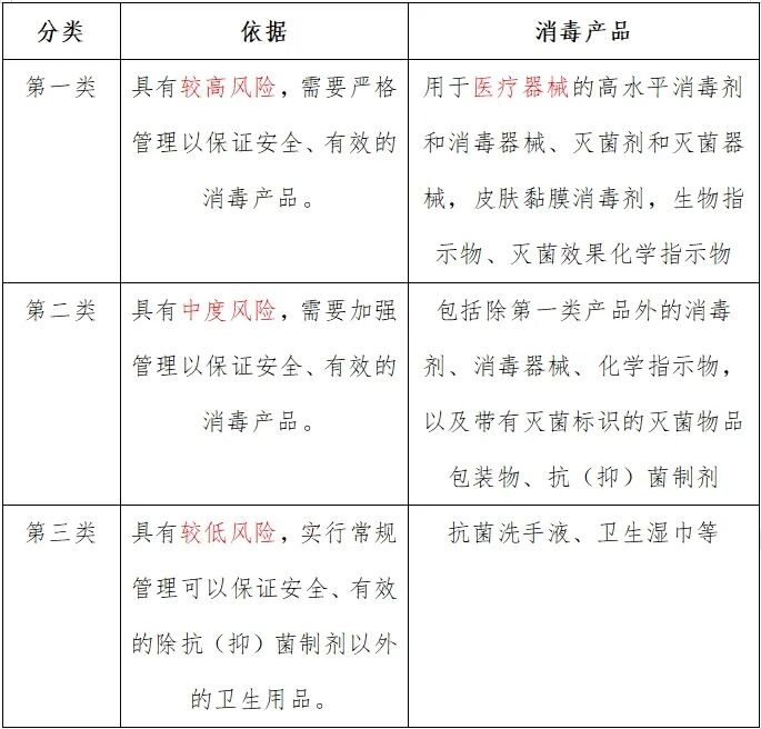 按风险分类,可分为第一类消毒产品、第二类消毒产品和第三类消毒产品。
