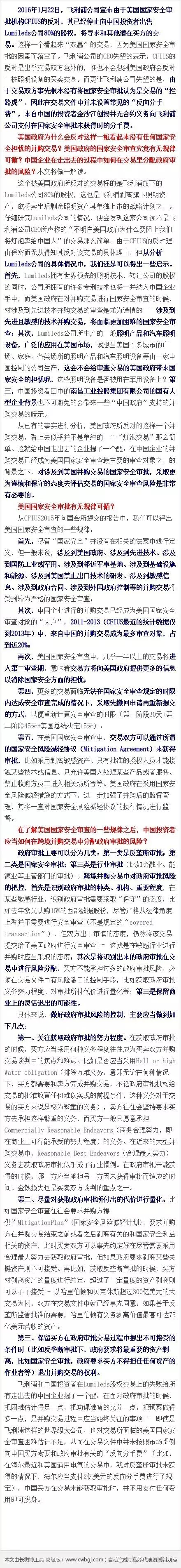 所以,这个交易里,中国买家团未能胜出和CFIUS审批没有直接关系,只是中国买家团所提供的交易条件并没有达到足以吸引仙童半导体公司董事会,使其认为可以抵销CFIUS可能不批准的风险 - 尽管该公司的董事会也承认,CFIUS很有可能会批准中国买家团和仙童半导体公司的交易。