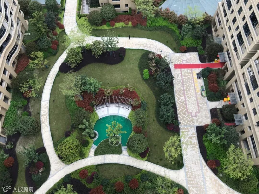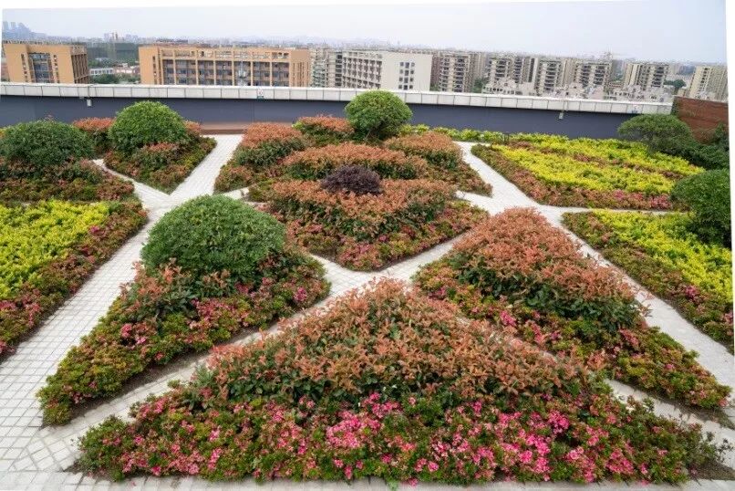 绿谷·杭州是钱塘智慧城自主开发的首个城市综合体项目,总面积30万平方米。项目整体布局以山水为设计原型,以建设生态节能绿色建筑为设计理念,采用建筑退台效果,以墙面垂直绿化作为立面的构图元素,绿化竖向延伸直至屋顶花园。在景观序列的营造上,通过点面结合的手法,塑造多层次景观节点,开放而不失幽静。在绿化配置上,根据不同部位的覆土深度设置水池、草坪、灌木或树阵,树影婆娑、花团锦簇,烘托出“绿谷”的鲜明特色。