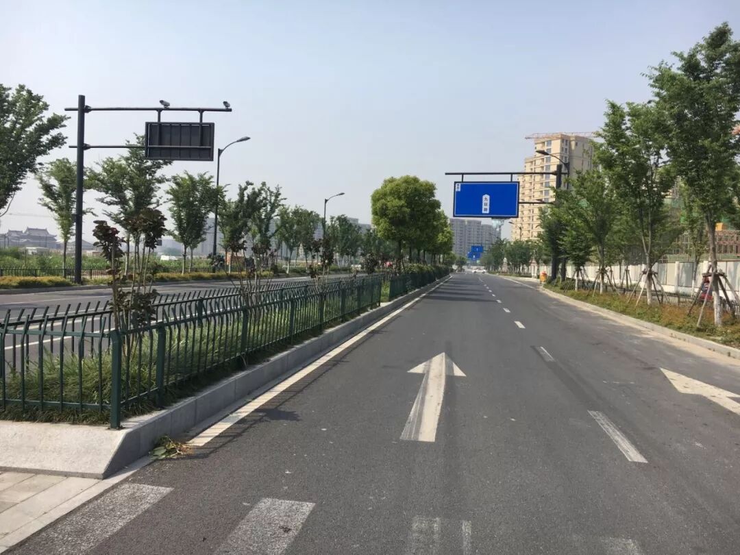 道路两侧通过多种植物布局,营造绿意、生态的景观空间。在树种搭配上,利用高大乔木、低矮灌木,形成高低起伏、错落有致的植物群落;在色彩上,充分考虑四季常青,注重花形品相,运用色叶灌木、青翠草坪、艳丽花卉来体现植物的群体美;局部结合行车视线打造精致的节点,沿途路口设置绿化分流带,以精而小的形状坐落于路口节点,从而提高通行质量、提升城市景观。