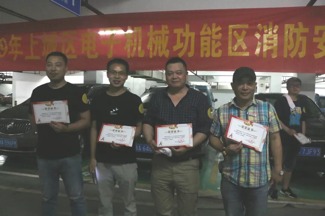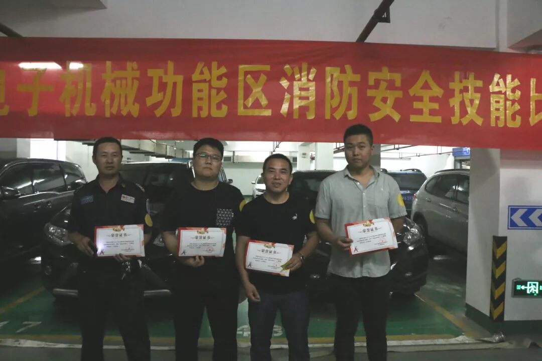 随后,大家在消防员的指导下依次进行水带接力、灭火接力、逃生接力三个比赛项目。消防员亲自示范消防水带、灭火器等器材的使用方法和注意事项。尽管活动场地在功能区二期标准厂房的地下车库内,但是大家都发挥出了最佳状态,在比武活动中展现出了力争上游的精神风貌;企业职工、物业工作人员和管委会工作人员,相互配合,共同前进,奋勇拼搏,进一步增进了友谊和默契。最后,根据消防员裁判的评分,评选出此次比赛的一二三等奖,并颁发了荣誉证书。