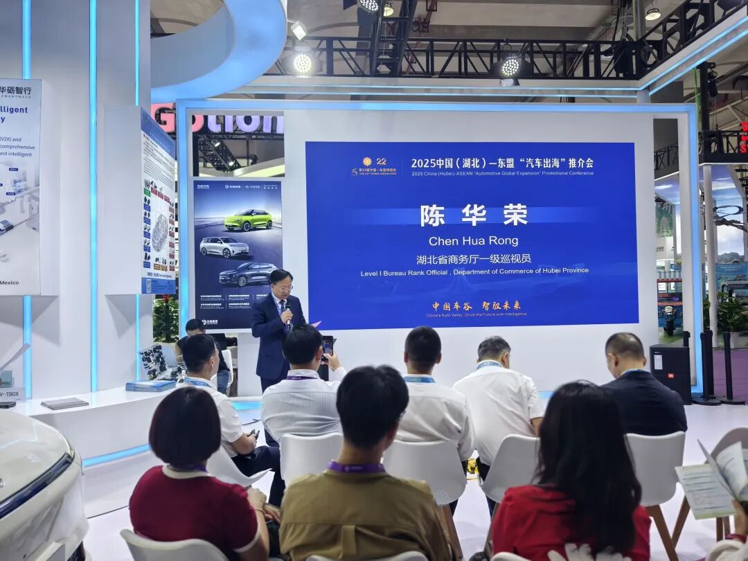 在“中国车谷 智驭未来”—2025 中国(湖北)-东盟“汽车出海”对接洽谈会上,武汉经开区、东风进出口、长江车百链、湖北飞龙、瑞力专汽等先后推介,与马来西亚、越南等国家30余名采购商积极对接。省商务厅一级巡视员陈华荣致辞,希望湖北车企精准对接东盟市场需求,有效转化中国-东盟自贸区3.0版谈判成果,用好RCEP原产地规则和关税优惠政策,加快适销产品研发,积极开拓海外市场。