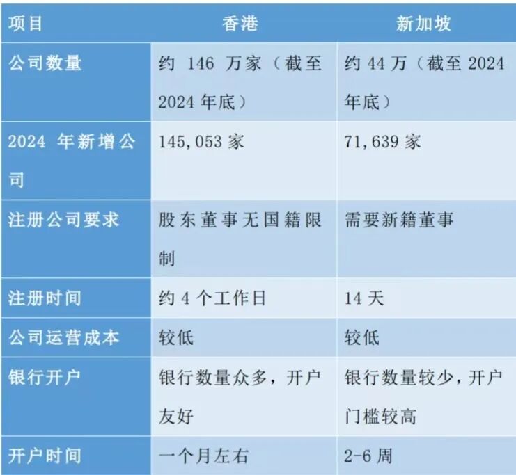 简析:在公司注册流程、维护成本与开户便利性方面,香港依然具备一定的制度成熟度优势,整体操作流程对中小企业更为友好。新加坡则在KYC审查、银行账户审慎程度方面更为严格,适合长期合规发展的中大型机构。