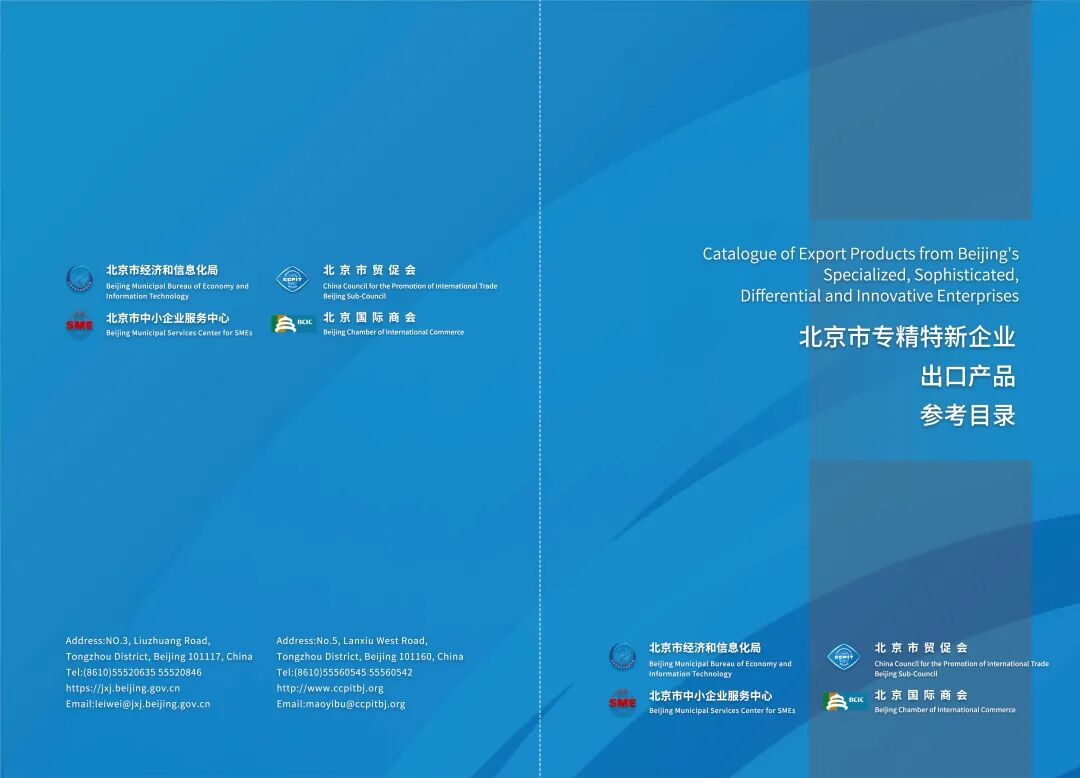 《出口目录》由北京市经信局、北京市贸促会面向全市专精特新企业公开征集,旨在助推我市专精特新企业加速开拓海外市场,全方位提升国际竞争力。《出口目录》采用中英文双语,共计收录专精特新企业161家,包括机器人与自动设备、生物医药与医疗器械、电子与通信技术、数字智能与云服务等18个细分领域。