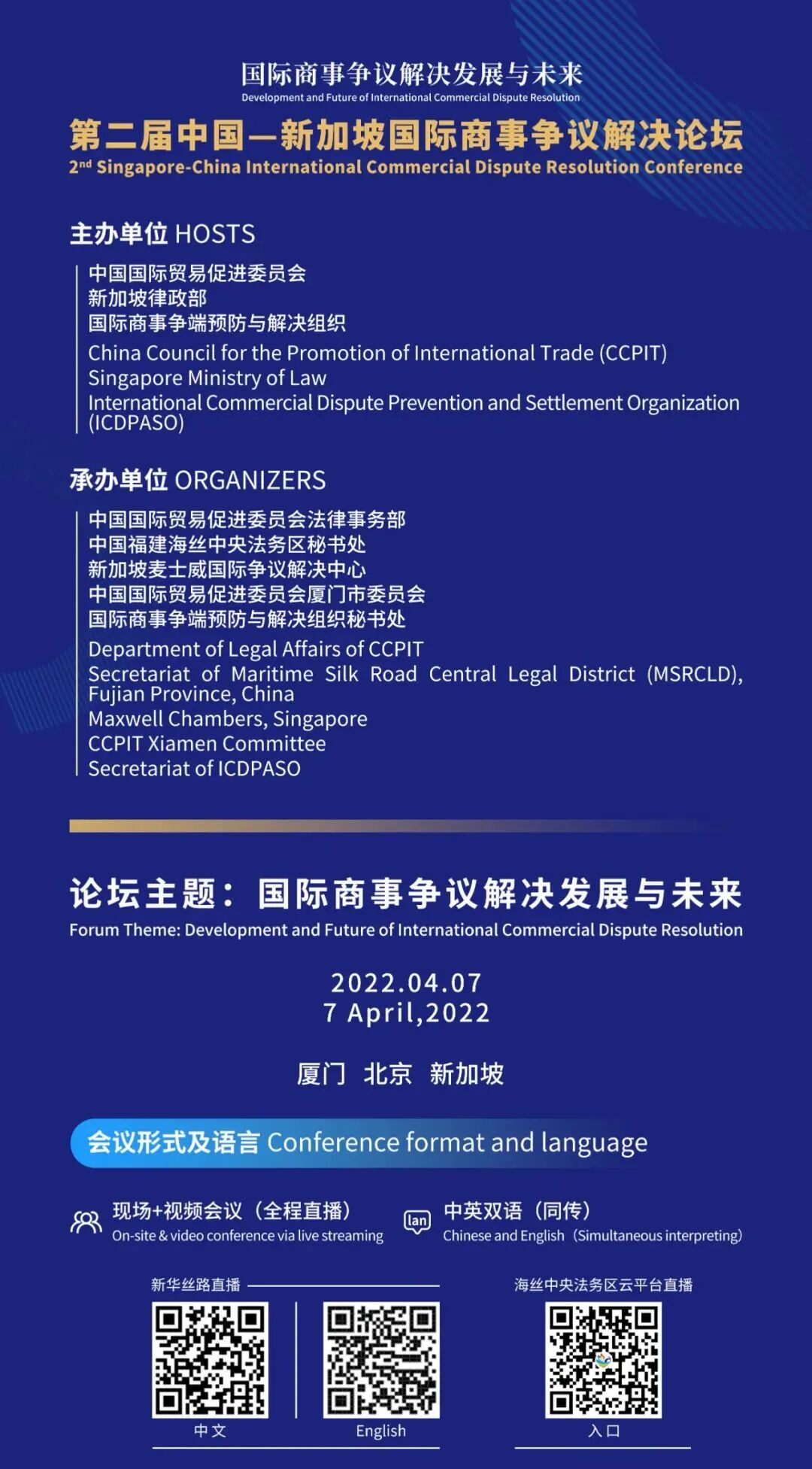 有兴趣在线上参与第二届“中国—新加坡国际商事争议解决论坛”(4月7日)的读者,可以长按并扫描以上二维码或点击“阅读原文”报名。