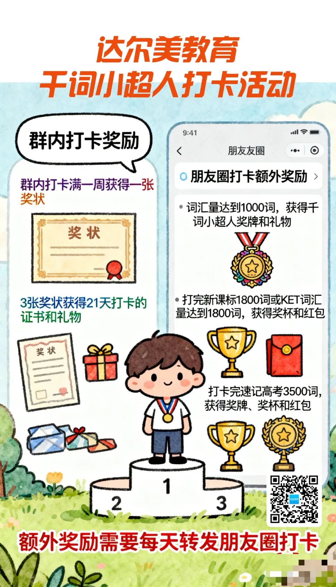 奖励1: 词汇量达到1000 词,获得千词小超人