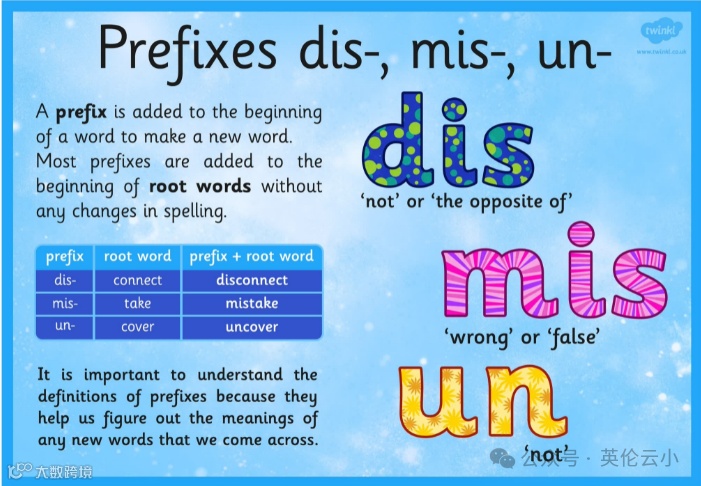 例如,“dis-”通常表示否定或相反,将其加到“agree”上,就形成了“disagree”,意为“不同意”。