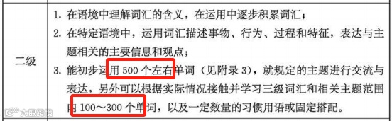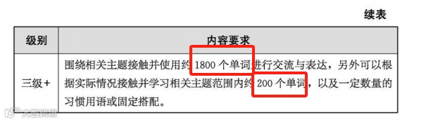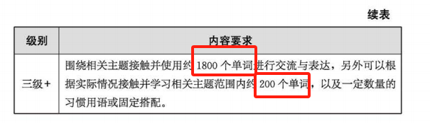 到了初中水平,老版本要求掌握的核心单词是1500~1600个,新版课标是1800~2000个。多出来的这400个词汇,就是出现新课标的最高级别——“三级+”。