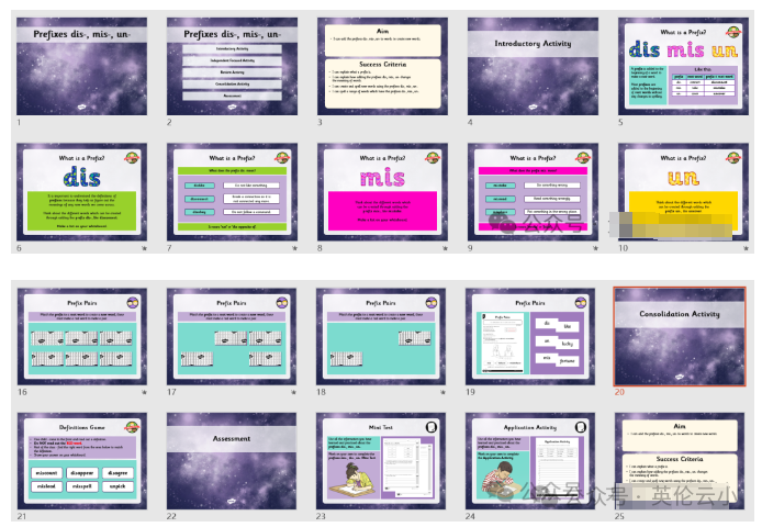 这里分享一套有趣精美词根词缀PPT课件,包含常见的词缀,原版PPT课件,资源来自英国教育网Twinkl。