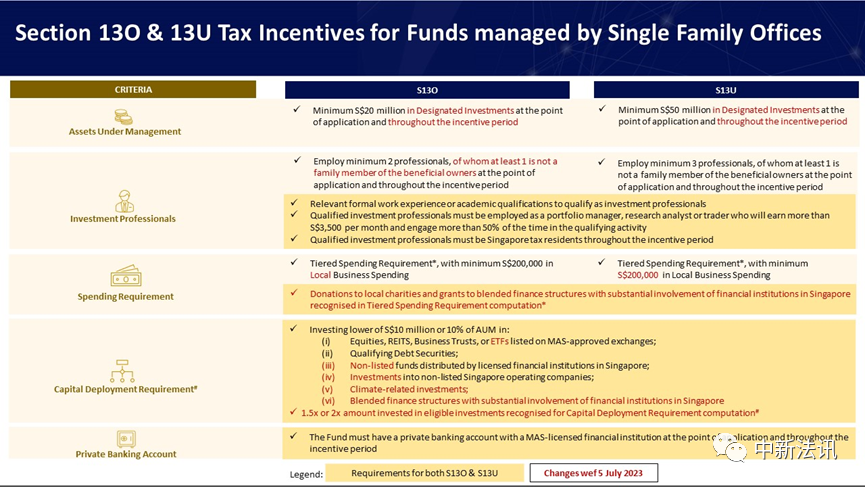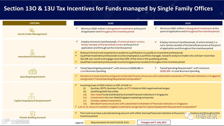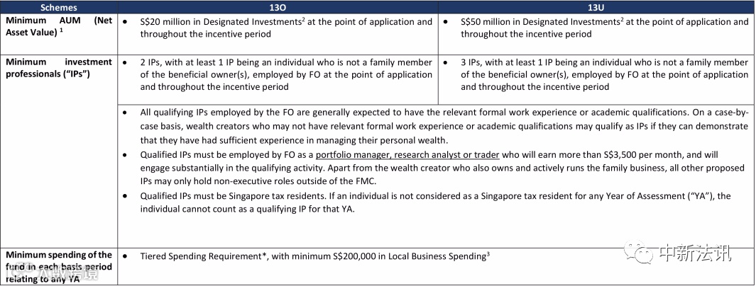 在申请时和整个税务豁免期内,13O 和 13U 都需始终保持 2000 万新币及 5000 新币以上的管理资产规模,否则,税收激励政策将被撤销;