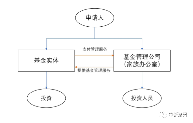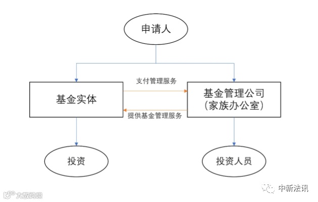 常见的新加坡家族办公室的架构中(见下图),高净值人士首先需要注册一个基金实体和一个基金管理公司。由基金实体持有高净值人士的金融资产,如股票、股权甚至保单等形式的财富,由基金管理公司管理该基金实体,该基金管理公司即为新加坡家族办公室。