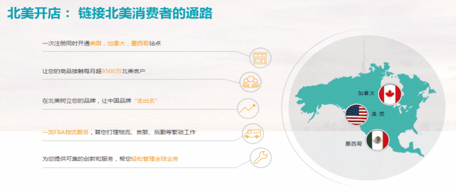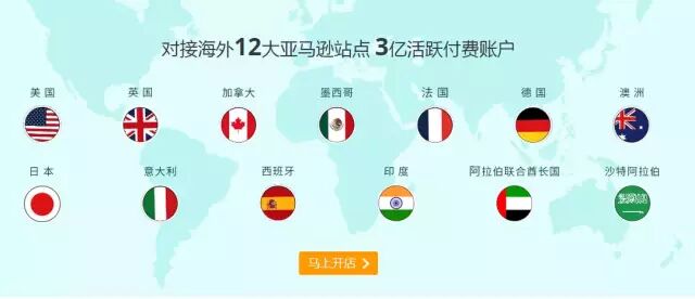 亚马逊全球开店致力于帮助中国卖家发展出口业务、拓展全球市场、打造国际品牌。目前,亚马逊在全球拥有支持27种语言的18个大站点,中国卖家可通过遍布全球的175个亚马逊运营中心将产品销往美国、欧洲及日本等全球185个国家和地区的3亿的活跃用户。